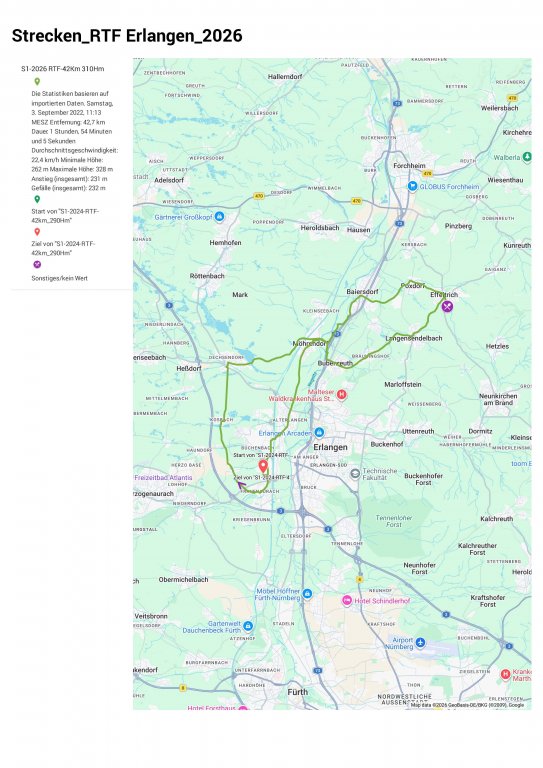 Am Sonntag, 17. Mai 2026, findet in der Zeit von 7 bis 16 Uhr die 20. Erlanger Radtouristikfahrt „Zwischen Karpfenweihern und Fränkischer Schweiz“ statt. Start und Ziel der Veranstaltung ist der Baumarkt Hornbach, Zum Hutacker 6, 91056 Erlangen. Zur Auswahl stehen vier unterschiedlich anspruchsvolle Strecken mit Längen von 42 km, 82 km, 124 km und 158 km.